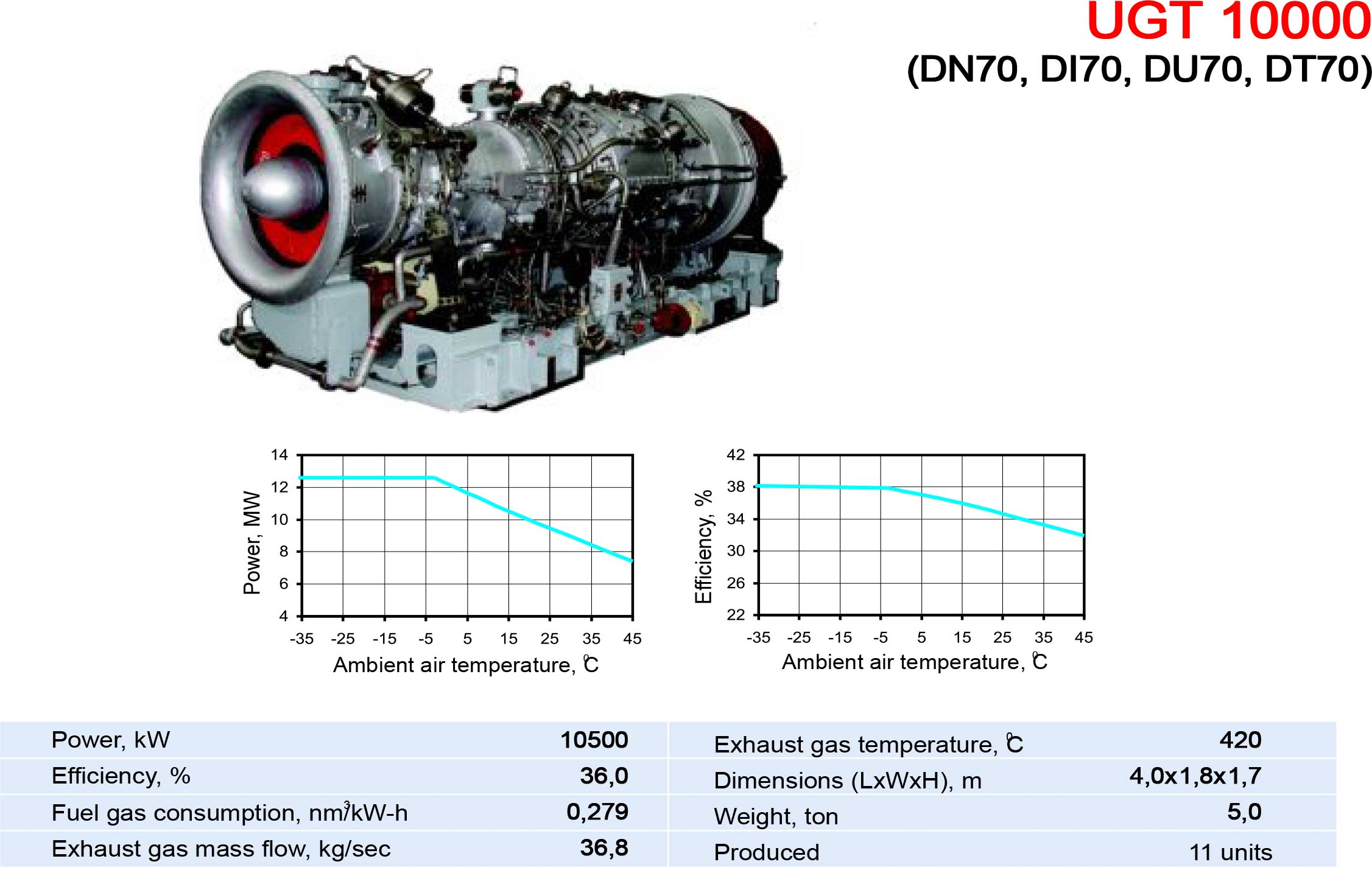 - توربین UGT6000 DT71 در واحد GPA-C-6,3S تولید سری شده است. این واحد در پمپاژ گاز استفاده میشود.